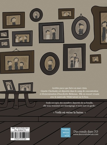 Alors qu'Aurore D'Hondt est en terminale au lycée en 2018, sa classe reçoit Ginette Kolinka. Attentifs, les élèves écoutent le récit que Ginette partage avec eux sur la Shoah qu'elle et sa famille ont subit. Le choc est rude et Aurore en ressort avec le souhait de réaliser ce que Ginette leur demande à la fin de sa visite : transmettre à leur tour afin de garder cette partie de l'Histoire dans la mémoire de tous. L'album c'est Ginette Kolinka qui parle, qui revit courageusement une partie de sa vie extrêmement douloureuse. Ce récit, commun à des millions d'autres, est destiné à tous. Il apporte un témoignage fort et direct.