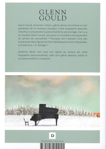 La biographie dessinée d'un génie de la musique. Glenn Gould, star planétaire de la musique classique, génie absolu et solitaire. Cette biographie retrace la vie du célèbre pianiste canadien pour tenter de comprendre sa personnalité cachée et en percer le mystère... Pourquoi a-t-il arrêté si brutalement sa carrière de concertiste ? Pourquoi est-il devenu une des premières figures de l'ère médiatique à vouloir disparaître ? Sandrine Revel met tout son talent au service de cette peinture magnifique d'un génie au mal-être tangible. Sandrine Revel nous offre une biographie époustouflante de ce génie à la personnalité complexe.