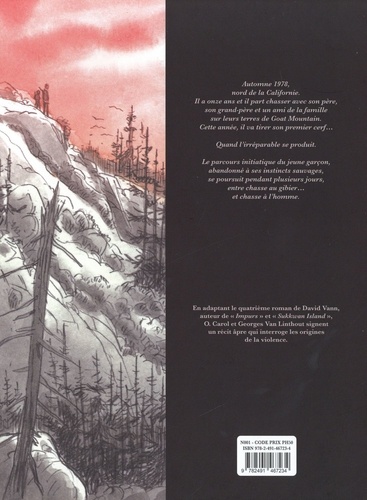 Le jeune garçon vient de fêter ses onze ans, la tradition veut qu'il chasse son premier cerf en famille. Mais l'excitation de tuer son premier animal le rend fébrile. Quand un braconnier traverse le champ de son viseur. Ses modèles de vie dévoilent alors leurs instincts les plus outranciers et les plus primaires. Un récit âpre qui interroge les origines de la violence. Automne 1978, nord de la Californie. Il a onze ans et il part chasser avec son père, son grand-père et un ami de la famille sur leurs terres de Goat Mountain. Cette année, il va tirer son premier cerf... Quand l'irréparable se produit. Le parcours initiatique du jeune garçon, abandonné à ses instincts sauvages, se poursuit pendant plusieurs jours, entre chasse au gibier... et chasse à l'homme. En adaptant le quatrième roman de David Vann, auteur de " Impurs " et " Sukkwan Island ", O. Carol et Georges Van Linthout signent un récit âpre qui interroge les origines de la violence.