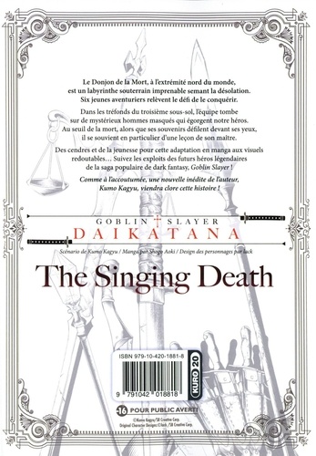 Préquel de Goblin Slayer se déroulant dix ans avant les événements de la série principale. Le Donjon de la Mort, à l'extrémité nord du monde, est un labyrinthe souterrain imprenable semant la désolation. Six jeunes aventuriers relèvent le défi de le conquérir. Dans les tréfonds du troisième sous-sol, l'équipe tombe sur de mystérieux hommes masqués qui égorgent notre héros. Au seuil de la mort, alors que ses souvenirs défilent devant ses yeux, il se souvient en particulier d'une leçon de son maître. Des cendres et de la jeunesse pour cette adaptation en manga aux visuels redoutables... Suivez les exploits des futurs héros légendaires de la saga populaire de dark fantasy, Goblin Slayer ! Comme à l'accoutumée, une nouvelle inédite de l'auteur, Kumo Kagyu, viendra clore cette histoire !