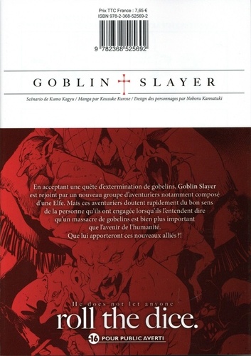 En acceptant une quête d'extermination de gobelins, Goblin Slayer est rejoint par un nouveau groupe d'aventuriers notamment composé d'une Elfe. Mais ces aventuriers doutent rapidement du bon sens de la personne qu'ils ont engagée lorsqu'ils l'entendent dire qu'un massacre de gobelins est bien plus important que l'avenir de l'humanité. Que lui apporteront ces nouveaux alliés ? !