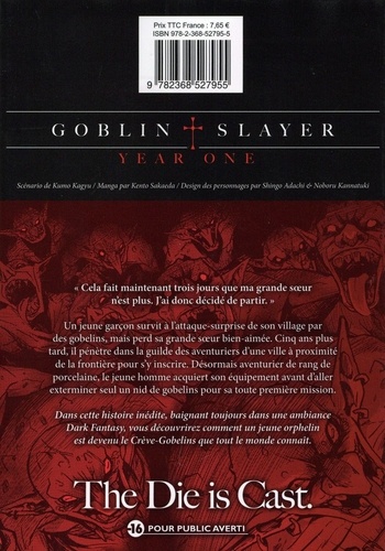 Dans cette histoire inédite, baignant toujours dans une ambiance Dark Fantasy, vous découvrirez comment un jeune orphelin est devenu le Crève-Gobelins que tout le monde connaît. "Cela fait maintenant trois jours que ma grande soeur n'est plus. J'ai donc décidé de partir". Un jeune garçon survit à l'attaque-surprise de son village par des gobelins, mais perd sa grande soeur bien-aimée. Cinq ans plus tard, il pénètre dans la guilde des aventuriers d'une ville à proximité de la frontière pour s'y inscrire. Désormais aventurier de rang de porcelaine, le jeune homme acquiert son équipement avant d'aller exterminer seul un nid de gobelins pour sa toute première mission.