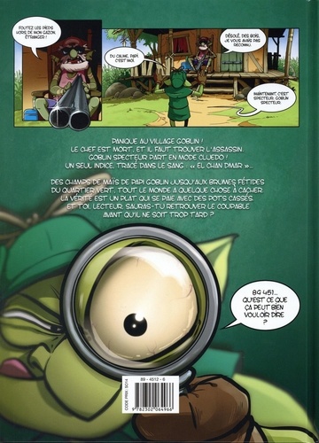 Un polar absurde où s'exprime la bêtise infinie des petites créatures vertes ! Tout le monde est coupable, et rien n'est ce qu'il paraît. Goblin Des bois change sa casquette pour celle d'un apprenti Sherlock Holmes, mène l'enquête et va de surprise en surprise, tandis que le lecteur retrouve tous ses personnages favoris (Papi Goblin, l'ingénieur, L'élu. .) dans des rôles à leur mesure.