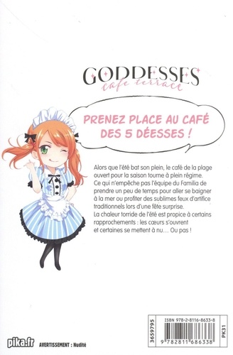 Prenez place au café des 5 déesses ! Alors que l'été bat son plein, le café de la plage ouvert pour la saison tourne à plein régime. Ce qui n'empêche pas l'équipe du Familia de prendre un peu de temps pour aller se baigner à la mer ou profiter des sublimes feux d'artifice traditionnels lors d'une fête surprise. La chaleur torride de l'été est propice à certains rapprochements : les coeurs s'ouvrent et certaines se mettent à nu... Ou pas !