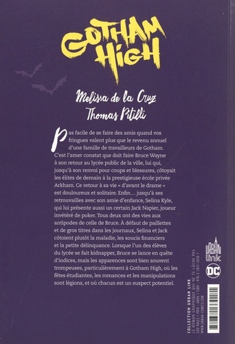 Pas facile de se faire des amis quand vos fringues valent plus que le revenu annuel d'une famille de travailleurs de Gotham. C'est l'amer constat que doit faire Bruce Wayne à son retour au lycée public de la ville, lui qui, jusqu'à son renvoi pour coups et blessures, côtoyait les élites de demain à la prestigieuse école privée Arkham. Ce retour à sa vie " d'avant le drame " est douloureux et solitaire. Enfin... jusqu'à ses retrouvailles avec son amie d'enfance, Selina Garcia Kyle, qui lui présente aussi un certain Jack Napier, joueur invétéré de poker. Tous deux ont des vies aux antipodes de celle de Bruce. A défaut de paillettes et de gros titres dans les journaux, Selina et Jack côtoient plutôt la maladie, les soucis financiers et la petite délinquance. Lorsque l'un des élèves du lycée se fait kidnapper, Bruce se lance à la recherche d'indices, mais les apparences sont bien souvent trompeuses, particulièrement à Gotham High, où les fêtes étudiantes, les romances et les manipulations sont légions, et où chacun devient un suspect potentiel§