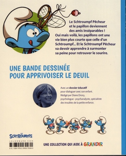 Le Schtroumpf Pêcheur et le papillon deviennent des amis inséparables ! Oui mais voilà, les papillons ont une vie bien plus courte que celle d'un Schtroumpf... Et le Schtroumpf Pêcheur va devoir apprendre à surmonter sa peine pour retrouver le sourire. Une bande dessinée pour apprivoiser le deuil. Avec un dossier éducatif pour dialoguer avec son enfant.