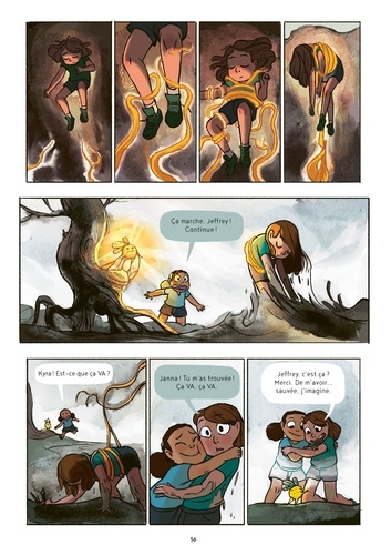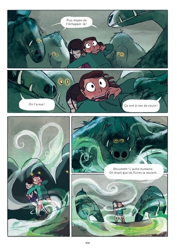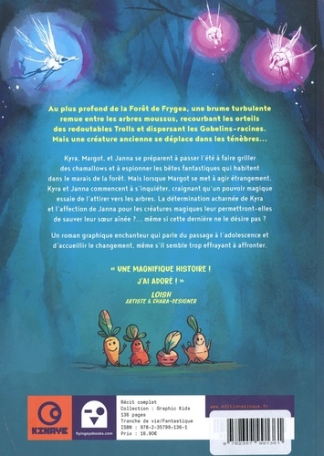 Au plus profond de la Forêt Frygea, une brume turbulente remue entre les arbres moussus, recourbant les orteils des redoutables Trolls et dispersant les Gobelins-racines. Mais une créature ancienne se déplace dans les ténèbres... Kyra, Margot, et Janna se préparent à passer l'été à faire griller des chamallows et à espionner les bêtes fantastiques qui habitent dans le marais de la forêt. Mais lorsque Margot se met à agir étrangement, Kyra et Janna commencent à s'inquiéter, craignant qu'un pouvoir magique essaie de l'attirer vers les arbres. La détermination acharnée de Kyra et l'affection de Janna pour les créatures magiques leur permettront-elles de sauver leur soeur aînée ? ... même si cette dernière ne le désire pas ? Un roman graphique enchanteur qui parle du passage à l'adolescence et d'accueillir le changement, même s'il semble trop effrayant à affronter.