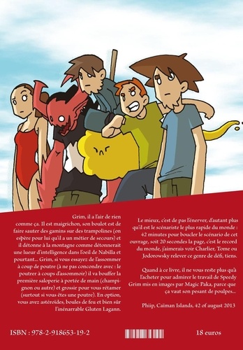 Grim, il a l'air de rien comme ça. Il est maigrichon, son boulot est de faire sauter des gamins sur des trampolines (on espère pour lui qu'il a un métier de secours) et il détonne à la montagne comme détonnerait une lueur d'intelligence dans l'oeil de Nabilla et pourtant... Grim, si vous essayez de l'assommer à coup de poutre (à ne pas concondre avec : le poutrer à coups d'assommoir) il va bouffer la première saloperie à portée de main (champignon ou autre) et grossir pour vous rétamer (surtout si vous êtes une poutre). En option, vous avez astéroïdes, boules de feu et bien sûr l'inénarrable Gluten Lagann.
