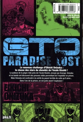 Le pubeux de la pègre rôde près de l'école Kisshô, envoyé par Araragi. Onizuka et sa bande ont découvert des preuves vidéo permettant de l'expédier en prison. Mais Onizuka est confronté à la vérité du passé terrible de celle qu'il aime... Dans l'arc de la prison, on est juste avant l'explosion !