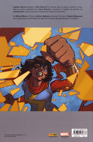Captain Marvel propose à Miss Marvel de l'assister dans sa guerre contre le crime. Mais la justice préventive de Carol Danvers commence à frapper les proches de Kamala Khan, qui se met alors à douter des choix de son mentor. G Willow Wilson (A-Force), Adrian Alphona (Uncanny X-Force) et Takeshi Miyazawa (Les Fugitifs) façonnent le destin de Miss Marvel dans des épisodes liés à Civil War II.