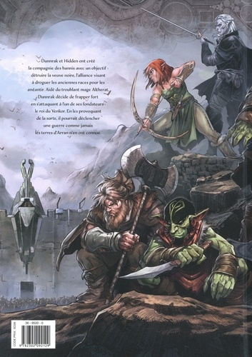 Guerres d'Arran tome 1 est le commencement d'un crossover réunissant les héros emblématiques vus dans les albums parus depuis 2013. Ils s'affronteront dans une guerre totale opposant les hommes aux anciennes races. Dunnrak et Hidden ont créé la compagnie des bannis avec un objectif : détruire la veuve noire, l'alliance visant à droguer les anciennes races pour les anéantir. Aidé du troublant mage Altherat, Dunnrak décide de frapper fort en s'attaquant à l'un de ses fondateurs : le roi du Venkor. En les provoquant de la sorte, il pourrait déclencher une guerre comme jamais les terres d'Arran n'en ont connue.