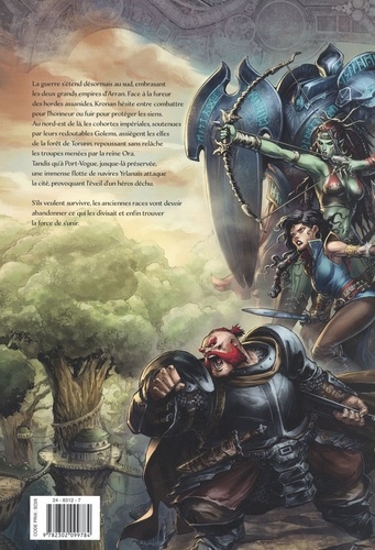 Le tome 3 du crossover réunissant les héros emblématiques des terres d'Arran. Entravés par leurs rancoeurs millénaires, les anciennes races peinent à s'unir pour endiguer l'avancée des armées humaines. Face à l'immense horde assanide, Kronan hésite entre l'honneur ou la raison, le combat ou la fuite. Tandis que les elfes Bleus de Port-Vogue, jusqu'alors préservés, se retrouvent assiégés par une immense flotte de navires yrlanais, à l'Ouest, une nouvelle légion d'hommes et de Golems assiègent les Elfes de la forêt de Torunn, repoussant toujours plus loin les Sylvains menés par la reine Ora...