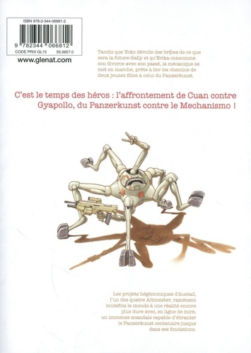 Tandis que Yoko dévoile des bribes de ce que sera la future Gaily et qu'Erika consomme son divorce avec son passé, la mécanique se met en marche, prête à lier les chemins de deux jeunes filles à celui du Panzerkunst. C'est le temps des héros : l'affrontement de Cuan contre Gyapollo, du Panzerkunst contre le Mechanismo ! Les projets hégémoniques d'Austad, l'un des quatre Altmeister, ramènent toutefois le monde à une réalité encore plus dure avec, en ligne de mire, un immense scandale capable d'ébranler le Panzerkunst centenaire jusque dans ses fondations.