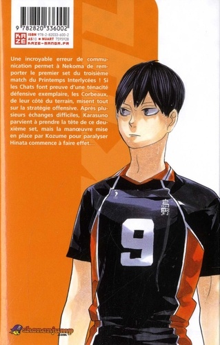 Une incroyable erreur de communication permet à Nekoma de remporter le premier set du troisième match du Printemps Interlycées ! Si les Chats font preuve d'une ténacité défensive exemplaire, les Corbeaux, de leur côté du terrain, misent tout sur la stratégie offensive. Après plusieurs échanges difficiles, Karasun parvient à prendre la tête de ce deuxième set, mais la manoeuvre mise en place par Kozume pour paralyser Hinata commence à faire effet...