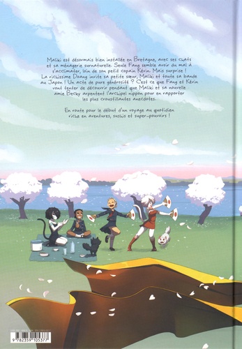 Maliki est désormais bien installée en Bretagne, avec ses chats et sa ménagerie surnaturelle. Seule Fang semble avoir du mal à s'acclimater, loin de son petit copain Kévin. Mais surprise ! La richissime Doang invite sa petite soeur, Maliki et toute sa bande au Japon ! Un acte de pure générosité ? C'est ce que Fang et Kévin vont tenter de découvrir pendant que Maliki et sa nouvelle amie Becky arpentent l' archipel nippon pour en rapporter les plus croustillantes anecdotes. En route pour le début d'un voyage au quotidien riche en aventures, sushis et super-pouvoirs !
