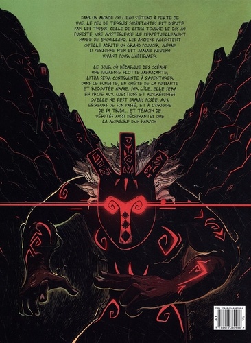 Dans un monde immergé où seules quelques îles surnagent, Litha est une jeune guerrière dure à cuire, la leader des forces aériennes de l'île de Loimata. Quand une flotte imposante de nomades hostiles et conquérants assiège l'île, Litha décide de pénétrer le brouillard nauséabond du Funeste, un ilot tabou, épicentre du mal qui a détruit une bonne partie de l'île quelques centaines d'années auparavant. En effet au sein du Funeste se cache une arme secrète et maléfique qui est le dernier espoir pour les habitants de l'île de repousser les envahisseurs. Mais depuis toujours personne n'est jamais revenu vivant du Funeste... Finalement les démons qui attendent Litha et ses compagnons seront plus intérieurs, les blessures et souffrances du passé referont surface et seront sans pitié. Rappelant furieusement une Polynésie à la Vaiana mais en plus sombre et angoissant, Harpoon évoque le passage de l'adolescence à l'âge adulte avec en toile de fond le poids de la famille et des exigences.
