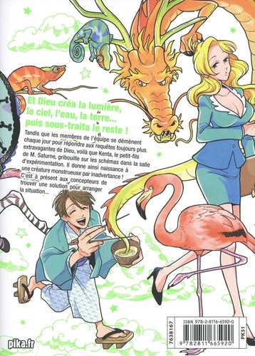 Et Dieu créa la lumière, le ciel, l'eau, la terre... Puis, sous-traita le reste ! Tandis que les membres de l'équipe se démènent chaque jour pour répondre aux requêtes toujours plus extravagantes de Dieu, voilà que Kenta, le petit-fils de M. Saturne, gribouille sur les schémas dans la salle d'expérimentation. Il donne ainsi naissance à une créature monstrueuse par inadvertance ! C'est à présent aux concepteurs de trouver une solution pour arranger la situation...
