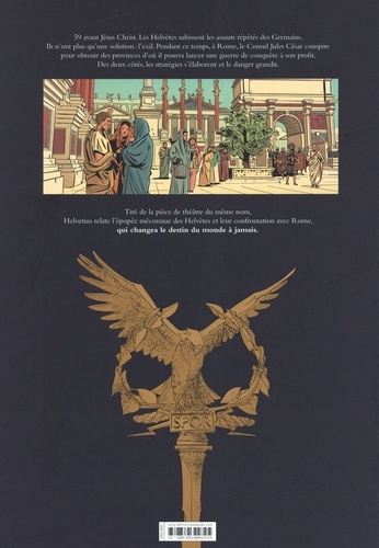 59 avant Jésus Christ. Les Helvètes subissent les assauts répétés des Germains. Ils n'ont plus qu'une solution : l'exil. Pendant ce temps, à Rome, le Consul Jules César conspire pour obtenir des provinces d'où il pourra lancer une guerre de conquête à son profit. Des deux côtés, les stratégies s'élaborent et le danger grandit. Tiré de la pièce de théâtre du même nom, Helvetius relate l'épopée méconnue des Helvètes et leur confrontation avec Rome, qui changea le destin du monde à jamais.