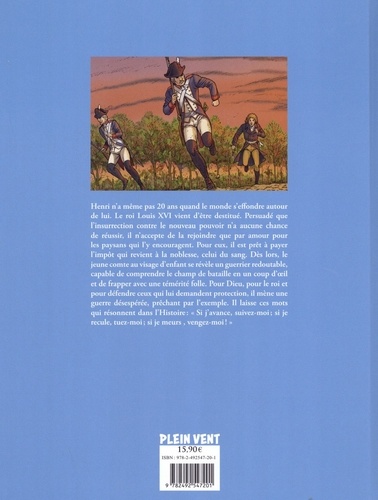Henri n'a même pas 20 ans quand le monde s'effondre autour de lui. Le roi Louis XVI vient d'être destitué. Persuadé que l'insurrection contre le nouveau pouvoir n'a aucune chance de réussir, il n'accepte de la rejoindre que par amour pour les paysans qui l'y encouragent. Pour eux, il est prêt à payer l'impôt qui revient à la noblesse, celui du sang. Dès lors, le jeune comte au visage d'enfant se révèle un guerrier redoutable, capable de comprendre le champ de bataille en un coup d'oeil et de frapper avec une témérité folle. Pour Dieu, pour le roi et pour défendre ceux qui lui demandent protection, il mène une guerre désespérée, prêchant par l'exemple. Il laisse ces mots qui résonnent dans l'Histoire : "Si j'avance, suivez-moi ; si je recule, tuez-moi ; si je meurs, vengez-moi ! "