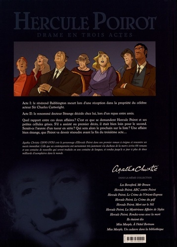 Acte I : le révérend Babbington meurt lors d'une réception dans la propriété du célèbre acteur Sir Charles Cartwright. Acte II : le renommé docteur Strange décède chez lui, lors d'un repas entre amis. Quel rapport entre ces deux affaires ? C'est ce que se demandent Hercule Poirot et ses petites cellules grises. S'il a assisté au premier décès, il était bien loin pour le second. Serait-ce l'oeuvre d'un tueur en série ? Qui sera alors le prochain sur la liste ? Une affaire bien étrange, que Poirot va devoir résoudre avant la fin du troisième acte...