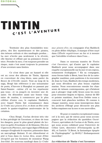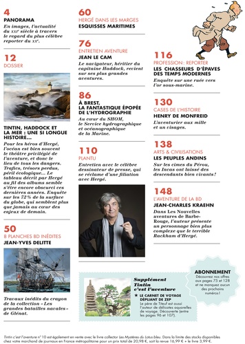 Du Sahara à l'Himalaya, des temples mayas aux cratères de la Lune, le plus célèbre reporter au monde a fait partager à des centaines de millions de lecteurs le goût de l'évasion, et incarne aujourd'hui plus que jamais l'esprit de l'aventure. Retrouvez-le 4 fois par an dans la revue Tintin c'est l'aventure, sur plus de 150 pages avec ceux qui font le XXIe siècle et notre actualité. Pour comprendre, connaître, voyager, en textes, illustrations et photos.