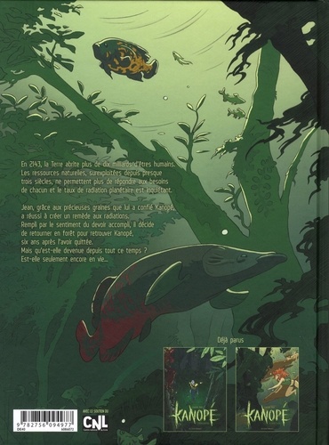 Histoire d'amour et récit d'anticipation sur fond de crise écologique, ce tome 2 de Kanopé confirme le talent d'une jeune autrice complète, qui n'en finit plus de nous étonner. Jean pénètre dans ce qui reste de l'Amazonie pour retrouver Kanopé, la femme pleine de ressources qu'il a aimée il y a 6 ans. Des ressources, c'est exactement ce qui manque à notre planète irradiée en cette année 2143 et le seul remède réside dans les graines M-Zem ne poussant qu'ici. Kanopé pourra certainement aider Jean dans sa mission mais elle est introuvable et les choses ont bien changé depuis son dernier passage.
