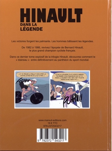 Les victoires forgent les palmarès. Les hommes bâtissent les légendes. De 1982 à 1986, revivez l'épopée de Bernard Hinault, le plus grand champion cycliste français. Dans ce dernier tome explosif de la trilogie Hinault, découvrez comment le " blaireau " entre définitivement au panthéon du sport mondial. Les deuxpremiers opus : Hinault, objectif Maillot Jaune (2019) Hinault, sur le toit du monde (2021)