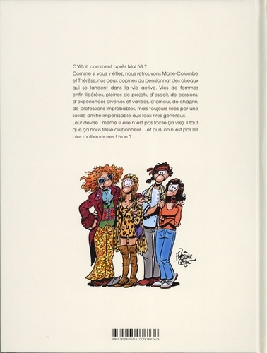 C'était comment après Mai 68 ? Comme si vous y étiez, nous retrouvons Marie-Colombe et Thérèse, nos deux copines du pensionnat des oiseaux qui se lancent dans la vie active. Vies de femmes enfin libérées, pleines de projets, d'espoir, de passions, d'expériences diverses et variées, d'amour, de chagrin, de professions improbables, mais toujours liées par une solide amitié impérissable aux foux rires généreux. Leur devise : même si elle n'est pas facile (la vie), il faut que ça nous fasse du bonheur... et puis, on n'est pas les plus malheureuses ! Non ?