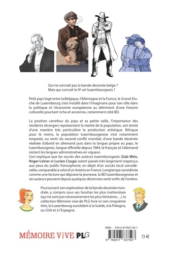 Qui ne connaît pas la bande dessinée belge ? Mais qui connaît le 9e art luxembourgeois ? Petit pays logé entre la Belgique, l'Allemagne et la France, le Grand-Duché de Luxembourg s'est installé dans l'imaginaire pour son rôle dans la politique et l'économie européenne au détriment d'une histoire culturelle pourtant riche et ancienne, notamment côté BD. La position carrefour du pays et sa petite taille, l'importance des résidents étrangers représentant la moitié de la population, ont teinté d'une manière très particulière la production artistique. Bilingue pour le moins, la population luxembourgeoise s'est notamment emparée, au sortir du second conflit mondial, d'une bande dessinée réalisée d'abord en allemand puis dans la langue propre au pays, le luxembourgeois, langue officielle depuis 1984, le français et l'allemand restant les langues administratives en vigueur. Ceci explique que les succès des auteurs luxembourgeois (Gab Weis, Roger Leiner et Lucien Czuga) soient passés très largement inaperçus aux yeux du public francophone, en dépit d'un succès local considérable, comparable à celui d'un Astérix en France. Longtemps considérée comme une lecture qui déprave la jeunesse, la BD luxembourgeoise et ses auteurs peuvent depuis quelques décennies sortir enfin de l'ombre. Poursuivant son exploration de la bande dessinée mondiale, y compris sous ses facettes les plus inattendues (qui ne sont pas nécessairement les plus lointaines...), la collection Mémoire vive de PLG livre ici son cinquième titre, le Luxembourg succédant a la Suède, à la Pologne, au Chili et a l'Espagne.