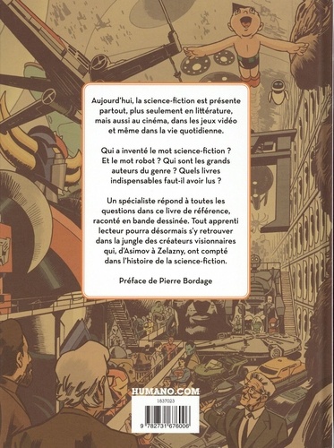 Cette bande dessinée documentaire retrace l'histoire de la science-fiction, narrée par un spécialiste du genre (auteur et libraire) guidant le lecteur au fil des pages. A travers un découpage chronologique en chapitres dédiés aux pères et mères fondateurs du genre, les auteurs mettent en scène la naissance des courants et thèmes incontournables (l'anticipation à la Verne, le voyage dans le temps de Wells, etc.) et les oeuvres auxquelles ils ont donné naissance. Plus qu'un simple historique, cet ouvrage propose une véritable réflexion autour du genre.