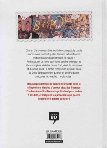 Chacun d'entre nous côtoie les timbres au quotidien, mais savons-nous vraiment quelles histoires extraordinaires cachent ces simples rectangles de papier ? Ambassadeur de notre patrimoine, survivant de guerres et catastrophes, véritable oeuvre d'art, objet de fantasmes et d'escroqueries : le timbre recèle mille mystères dans ce Docu-BD passionnant qui met en lumière quinze anecdotes incroyables... mais vraies ! Découvrez comment le timbre fut inventé dans le sillage d'une histoire d'amour, vivez les frasques d'un baron multimillionnaire prêt à tout pour arriver à ses fins, et imaginez les prouesses que pourra accomplir le timbre du futur !