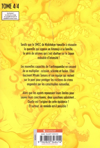 Tandis que le SMCC de Nishitokyo travaille à résoudre la querelle qui oppose un hitomoji à sa famille, la série de séismes qui s'est abattue sur le Japon redouble d'intensité ! Les nouvelles capacités de l'anthropamibe ne cessent de se multiplier : scission, sclérote et fusion. Elles fascinent Misaki Tamaru et son équipe qui restent sur le pont pour protéger les victimes du stress engendré par les catastrophes naturelles. Alors que les agents repoussent leurs limites pour sauver leurs concitoyens, deux questions subsistent... Quelle est l'origine de cette épidémie ? Et surtout, un remède est-il possible ?
