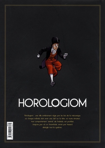 Retrouvez le chef-d'oeuvre de Fabrice Lebeault en version intégrale et laissez-vous emporter par une poésie souvent comparée à celle du Roi et l'Oiseau de Paul Grimault. Horologiom, un récit à la mécanique bien huilé... Horologiom est une ville régie par les lois de la mécanique. Chaque citoyen possède une clef au sommet du crâne que des robots à la main du pouvoir sont les seuls habilités à remonter. Les émotions et les comportements primitifs sont prohibés. Le strict respect des règles préserve la cité de tout imprévu... jusqu'au jour où un funambule déboule par accident, tel un grain de sable dans l'engrenage.