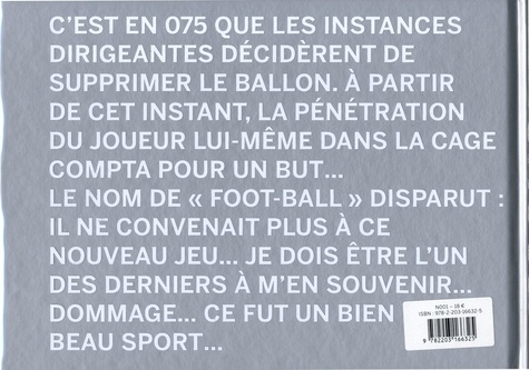 C'est en 075 que les instances dirigeantes décident de supprimer le ballon. A partir de ce moment, la pénétration du joueur lui-même dans la cage compte pour un but... Le nom de "football" disparut : il ne convenait plus à ce nouveau jeu... Je dois être l'un des derniers à m'en souvenir... Dommage... Ce fut un bien beau sport... Un grand classique d'Enki Bilal et Patrick Cauvin, un regard inattendu sur le foot que tous les passionnés voudront découvrir ou redécouvrir.