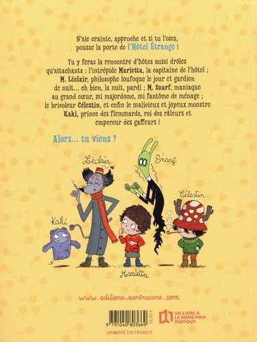 Nouvelle édition 2022 L'Hôtel Etrange est une petite pension de famille dont les habitants hibernent tranquillement en attendant le retour du printemps. Nos hôtes sont des personnages très attachants : Marrietta est une petite fille douce d'humeur égale et organisatrice hors pair ; M. Léclair, le gardien, est un philosophe au physique de lémurien ; M. Snarf, le fantôme de la réception, est la véritable mémoire de l'hôtel ; et, enfin, Kaki est un petit monstre aussi joyeux que velu !