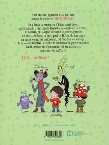 La nouvelle édition des tomes 5 et 6 dans la collection Les Petits Sarbac' ! L'Hôtel Etrange est une petite pension de famille dont les habitants hibernent tranquillement en attendant le retour du printemps. Nos hôtes sont des personnages très attachants : Marrietta est une petite fille douce d'humeur égale et organisatrice hors pair ; M. Léclair, le gardien, est un philosophe au physique de lémurien ; M. Snarf, le fantôme, de la réception est la véritable mémoire de l'hôtel ; et, enfin, Kaki est un petit monstre aussi joyeux que velu !