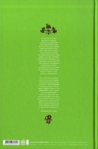 Il aura fallu à Gert quarante longues années de cauchemar pour réaliser que son penchant pour les crimes sanguinolents n'était peut-être pas un atout majeur pour se sortir du guêpier doucereux dans lequel elle s'est fourrée. Depuis cette épiphanie, elle essaie donc de se racheter une conduite, enchaînant les bonnes actions, les gentillesses et autres déclarations d'affection... Mais n'y aurait-il pas anguille sous roche ? Ne vous fiez pas aux couleurs acidulées et aux grands regards candides de tous ces charmants personnages, I HATE FAIRYLAND n'est pas un conte pour Skottie YOUNG (Le Magicien d'Oz, Middlewest), auteur complet de cette sanglante balade au bout de la mignonceté, crée avec le personnage de Gertrude un puissant antidote à tous ceux que la magie de Disney a fini par épuiser. Place à la violence explicite et aux insultes pâtissières ! Qu'advienne le règne de Gert la Destructrice !