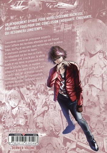 Un dénouement épique pour notre lycéenne hackeuse ! Préparez-vous pour une conclusion choquante, émouvante, qui résonnera longtemps... Considérés comme les principaux suspects dans l'affaire des terribles attentats qui ont frappé Tokyo, Ice Pig et ses amis sont recherchés par la police et poursuivis partout au Japon. En retournant sur les lieux où Farm, leur ennemi juré, a vu le jour, la vérité éclate et nos héros se préparent tous pour la bataille finale. Le mystère entourant le lien entre Ice Pig et Farm est enfin levé, et sa relation surprenante avec le chef de l'organisation, Kiyoharu, exposée... Attendez-vous à une fin émouvante !