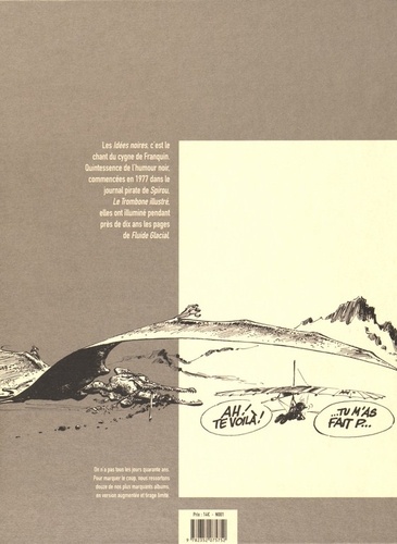 Les 40 ans de Fluide Glacial à travers 12 albums majeurs en version limitée « Cela vient sûrement d'une tendance à la dépression qui n'était pas mortelle car ce sont tout de même des gags pour faire rire, non ? » Cette citation d'André Franquin illustre bien l'état d'esprit d'Idées Noires. Ovni intemporel publié de 1977 à 1983 dans les pages de Fluide Glacial (première intégrale publiée en 2001) et qui en a fait le plus grand bestseller de Fluide Glacial se diffusant encore aujourd'hui à près de 20 000 exemplaires par an. Récemment citée dans le magnifique album de Luz (Catharsis/ Futuropolis), les Idées noires ont définitivement intégré le panthéon des grands classiques. Cette édition anniversaire fera sans aucun doute figure de collector pour les inconditionnels. Il sera incontestablement le cadeau à offrir à un jeune lecteur afin de lui faire découvrir un grand classique de la BD qui fait plus que jamais sens par ces moments troublés. Après tout, Idées Noires, par l'humour qu'il distille est avant tout un guide de survie en toute circonstance.