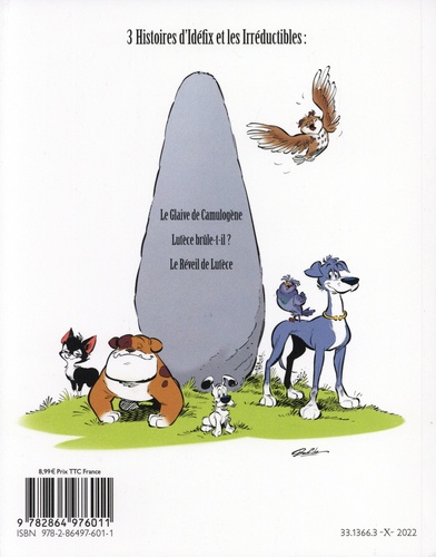 Nous sommes en 52 avant Jésus-Christ. Tout Lutèce est occupé par les Romains... Tout Lutèce ? Non ! Un petit groupe d'irréductibles animaux lutéciens menés par Idéfix résiste encore et toujours à l'envahisseur. Et la vie n'est pas facile pour le Général Labienus et la meute de chiens qui tentent de Romaniser Lutèce... 3 nouvelles histoires à découvrir dans le troisième tome : Le Glaive de Camulogène - Abraracourcix et Bonemine, de passage à Lutèce, s'emploient à empêcher le Romain Anglaigus de s'approprier le glaive ayant appartenu au chef des Gaulois de Lutèce. Idéfix et les amis leur viennent en aide à ces Gaulois aussi irréductibles qu'eux ! Lutèce brûle-t-il ? - Par la faute d'une folle invention d'Anglaigus qui imagine un chauffage au charbon pour le Palais romain, Lutèce subit un soudain réchauffement climatique en 52 avant Jésus-Christ... Asmatix, le vieux pigeon, est proche d'étouffer dans le noir nuage qui envahit la cité... Idéfix, Turbine, Baratine et Padgachix doivent agir au plus vite ! Le Réveil de Lutèce - Le plus fameux ténor de Lutèce, le coq Sinfonix, véritable réveille-matin de tous les Lutéciens, est en danger : les Romains le capturent pour en faire le déjeuner de la chatte Monalisa ! Idéfix et ses amis sont bien décidés à leur offrir à la place un plat de résistance, au sens propre !