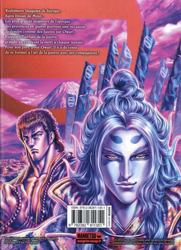 Yoshimoto Imagawa de Suruga... Saitô Dôsan de Mino... Les plus grands seigneurs de l'époque des provinces en guerre guettent une occasion de fondre comme des fauves sur Owari. Kippôshi, l'enfant de la guerre, grandit en côtoyant la mort à chaque instant. Pour son père, pour Owari, il n'a de cesse de se former à l'art de la guerre avec ses compagnons ! Retrouvez la toute nouvelle série de Tetsuo Hara et Seibô Kitahara, ancien responsable éditorial du mangaka chez Shueisha, dans cette biographie romancée de la vie d'Oda Nobunaga.