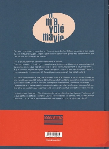 Femmes en danger, un récit bouleversant d'après le témoignage de Morgane Seliman. Elles sont nombreuses chaque jour en France à subir des humiliations ou à essuyer des coups au sein du foyer conjugal. Morgane Seliman le dit sans détours, grâce à sa détermination, elle s'est sauvée avant que le pire n'arrive. Tout avait pourtant bien commencé entre elle et Yassine. Entreprenant quand il s'agit de conquérir le coeur de Morgane, Yassine se montre charmant au premier rendez-vous. Il est attentionné et " protecteur ". Rapidement, le couple s'installe ensemble... A quel moment un signe alerte Morgane ? Cette violence était-elle déjà tapie là, dans une parole, dans un regard ? Quand le premier coup part, il est déjà trop tard. Par un mécanisme insidieux, Morgane va entrer dans une spirale infernale jusqu'au geste de trop. Après quatre ans de calvaire et un livre-témoignage (Il m'a volé ma vie, XO éditions 2015), Morgane Seliman tâche aujourd'hui de se reconstruire aux côtés de son fils. Elle ne se taira plus, car la parole reste le meilleur moyen de se protéger... Adaptation fidèle du livre éponyme, ce roman graphique nécessaire revient sur l'emprise destructrice d'un conjoint. Morgane Seliman, devenue une voix forte contre les violences faites aux femmes, livre à travers ce récit bouleversant sa vérité sur un drame qui fait une victime tous les deux jours en France. Le dessinateur Francesco Dibattista dépeint de manière frontale la peur, l'isolement et la culpabilité aux côtés du scénariste Laurent-Frédéric Bollée (La Bombe, Terra Australis, Patrick Dewaere...) qui trouve la voie pour aborder ce sujet avec dignité. Aujourd'hui Morgane Seliman est activement engagée contre les violences faites aux femmes. Elle informe et sensibilise l'opinion publique à travers des interventions dans les médias et des conférences au sein des lycées ou dans les entreprises.