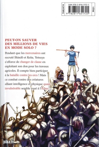 Peut-on sauver des millions de vies en mode solo ? Pendant que les mercenaires ont recruté Shindô et Keita, Yotsuya s'efforce de changer de classe en exploitant son don pour les travaux agricoles. Il compte bien participe à la bataille contre les orcs ! Mais ce combat contre des créatures alliant intelligence et physique quasi- invulnérable semble voué à l'échec...