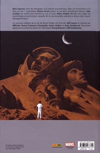 Marc Spector vient de s'échapper d'un hôpital psychiatrique. Mais cet événement a-t-il bien eu lieu ? Cependant, Steven Grant réalise le prochain blockbuster Marvel, Jake Lockley est arrêté pour meurtre et, sur la Lune, Moon Knight affronte une armée de lycanthropes extraterrestres. Laquelle de ces personnalités prendra le dessus dans l'esprit dérangé du héros ? Ce nouveau chapitre de la vie de Moon Knight est écrit par Jeff Lemire et dessiné par Wilfredo Torres, Francesco Francavilla, James Stokoe et Greg Smallwood. Découvrez également une histoire datant de 1980 signée Doug Moench et Bill Sienkiewicz.