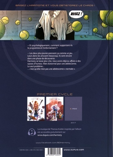 Six ans plus tôt : Harmony est une jeune orpheline qui, parce qu'elle présentait des symptômes de dégénérescence neuronale, a été intégrée dans le programme de recherche du docteur Torres. Aujourd'hui saine et sauve, l'incroyable talent qu'elle a développé, la télékinésie, intéresse en revanche beaucoup une société militaire privée. Cette dernière évince rapidement William Torres du programme. Son objectif est clair : monter un camp d'entraînement afin de développer, pour son propre profit, les aptitudes d'Harmony ainsi que celles d'autres enfants potentiellement concernés. Cette organisation arrivera-t-elle à faire de ces enfants des machines de guerre ? Mais surtout, William laissera-t-il Harmony courir un tel danger ? La suite de la prometteuse série de Mathieu Reynès dénoue peu à peu les mystères du premier tome. Intrigues de pouvoir, secrets d'Etat et aptitudes extraordinaires, le tout est servi à merveille par un dessin dynamique, moderne et d'une grande précision. Une saga addictive !