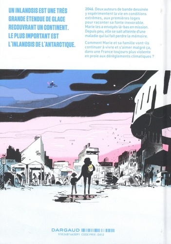 Que va-t-il se passer si l'inlandsis du pôle Sud ? cette épaisse couche de glace en Antarctique, qui contient la mémoire du monde ? continue à se réchauffer ? Que va-t-il se passer si les deux auteurs de bandes dessinées en résidence en Antarctique ne sont pas ravitaillés ? Combien de temps Marie, qui les a envoyés là-bas, va-t-elle pouvoir leur cacher son accident récent, qui lui fait perdre la mémoire ? Comment Romuald, Marie et son fils vont-ils continuer à vivre malgré ça ?