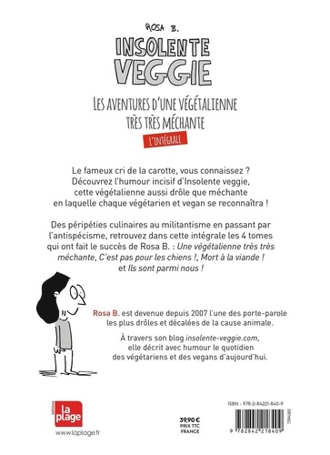 Acerbe, piquante et provocante, cette végétalienne aussi drôle que méchante croque avec humour ce qui fait le quotidien des végétariens et des vegans aujourd'hui : l'écologie, le spécisme, l'élevage, la corrida, les carnistes... Retrouvez l'humour décapant de Rosa B. dans cette intégrale, reprenant les meilleures planches de ses quatre volumes, ainsi que des inédits de son blog et des inédits créés spécialement pour cette intégrale : -Coronavirus et véganisme -Une vegan au salon de l'agriculture -Vocabulaire de la viande et produits vegan : le divorce ! -Et plein d'autres encore !