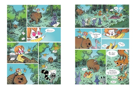 Alors que l'orage gronde, les soeurs Moustaches profitent de la nuit pour jouer a se faire peur. C'est rigolo ! Jusqu'à ce que papy évoque l'existence d'un fantôme chapardeur qui rôde près de la vieille souche, et effraye jusqu'aux plus courageux des habitants de la forêt. Un vrai fantôme ? Voila un défi a la mesure de notre trio !