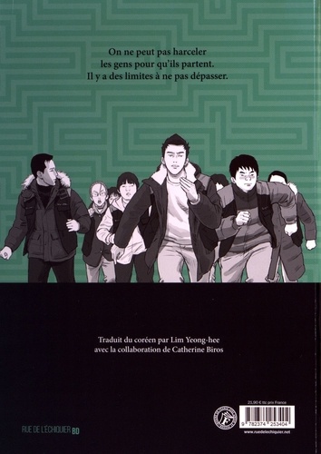 "On ne peut pas harceler les gens pour qu'ils partent. Il y a des limites à ne pas dépasser. Au début des années 2000, la crise financière et économique marque profondément la société coréenne. Dans ce contexte douloureux, un militant syndical à la fois idéaliste et pragmatique, le charismatique Gu Go-shin, mène des combats difficiles mais nécessaires au sein d'une petite agence-conseil de défense des travailleurs. Son chemin croise celui d'un jeune cadre d'une grande rectitude morale, Lee Su-in, ancien militaire révolté par les pratiques de son employeur, un grand groupe français implanté en Corée. Ensemble, ils se battent pour la création d'une section syndicale dans l'entreprise. Avec ce sixième et ultime volume, la chronique palpitante de ce conflit acharné connaît enfin son dénouement - et il n'est pas sans surprises... Passionnant récit des luttes sociales au quotidien, Intraitable revisite, par le biais de la fiction, l'histoire de l'implantation - finalement ratée - de Carrefour en Corée. Une histoire universelle, qui met en relief les dérives récurrentes des multinationales. Dans un style dynamique et élégant, Choi Kyu-sok relate comment les sociétés, malgré leurs contradictions internes, peuvent trouver l'énergie de leur résister. Traduit du coréen par Lim Yeong-hee avec la collaboration de Catherine Biros" "Choi Kyu-sok est considéré comme l'un des plus brillants représentants de la bande dessinée d'auteur coréenne. Entre satires sociales, récits d'apprentissage et chroniques incisives de la modernité, il a signé à ce jour une dizaine d'oeuvres, one shots, séries ou collectifs, parfois d'inspiration autobiographique. On le connaît en France depuis le milieu des années 2000, avec la traduction de Nouilles Tchajang (Kana/Made In) et des recueils L'amour est une protéine et Le Marécage (Casterman/Hanguk). Intraitable a été la première série de Choi Kyu-sok à paraître en français. Elle a fait l'object d'une adaptation audiovisuelle en Corée, sous la forme d'une série télévisée en douze épisodes de Kim Suk-yoon".