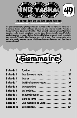 Une chute dans un puits envoie la jeune Kagome bans le passé. Elle se lie d'amitié avec Inu-Yaslra. un être hybride à la fois homme et démon. A deux, ils tentent de récupérer les fragments de la perle de Shikon dotés de terribles pouvoirs!